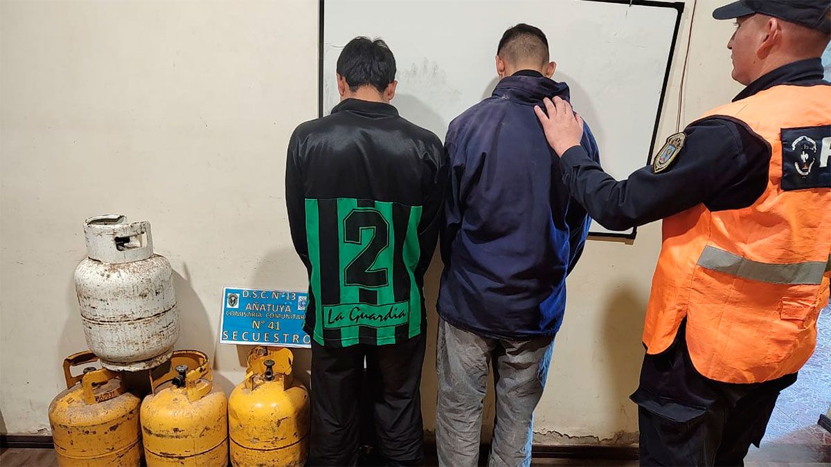 Entre los bienes recuperados que fueron secuestrados se encuentran indumentaria diversas, tres garrafas de 10 kg, y un monitor.