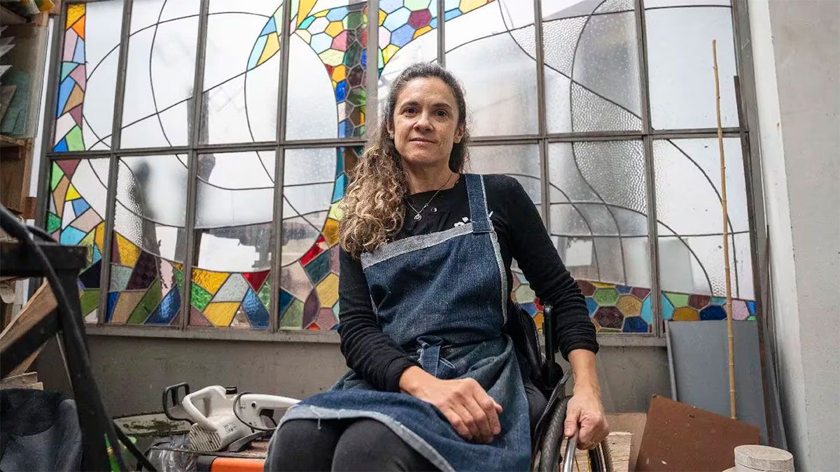 La artista detrás de estas intervenciones es Sofía Bernasconi, de 45 años, quien sufrió una lesión medular a los 19 y se traslada en silla de ruedas desde entonces. Tiene una profesión administrativa, trabaja en un banco, pero el arte es su vocación y desde 2022, es una herramienta para hablar de accesibilidad.