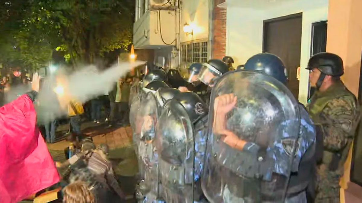 Antes de eso, los docentes intentaron ingresar a la Legislatura y allí también la autoridad policial empleó gases. Los incidentes ocurrieron la noche de este jueves luego de que tiraran las vallas que están ubicadas frente a la Cámara de Representantes.