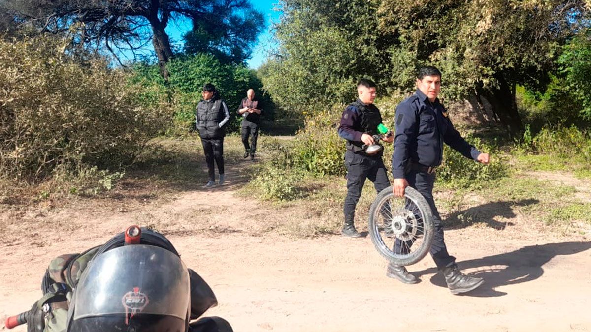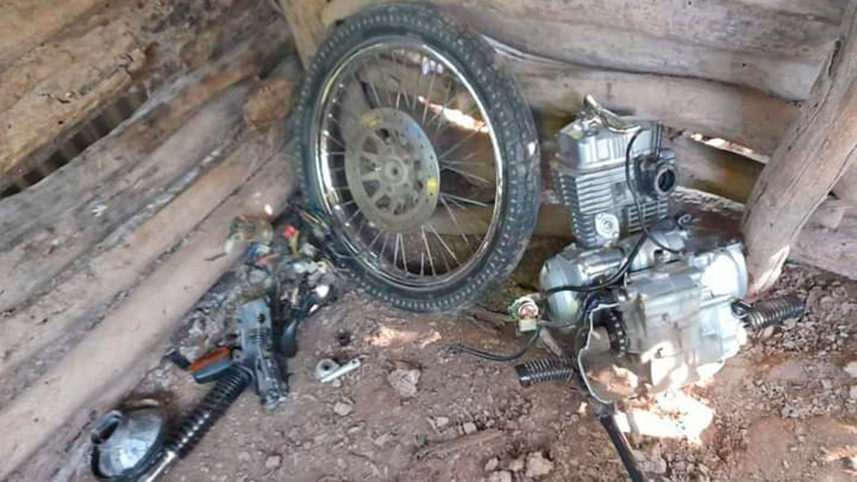 La policía realizó rastrillaje en zona de Tala Pozo, donde halló el rodado sin el motor y sin una rueda. En otro sector encontraron ocultos los faltantes.