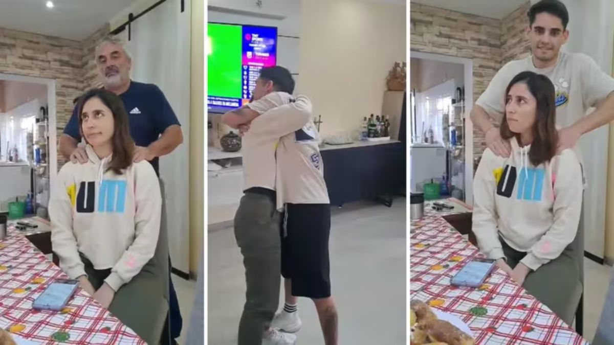Francisco, quien llevaba dos años viviendo en Italia, planeó cuidadosamente la sorpresa con la ayuda de su familia. La escena tuvo lugar en el living de su casa en Argentina, donde su hermana disfrutaba de un relajante masaje en la espalda, sentada en una silla y con los ojos cerrados. En ese momento, el padre de Francisco era el encargado de realizarle el masaje mientras su primo grababa el momento.