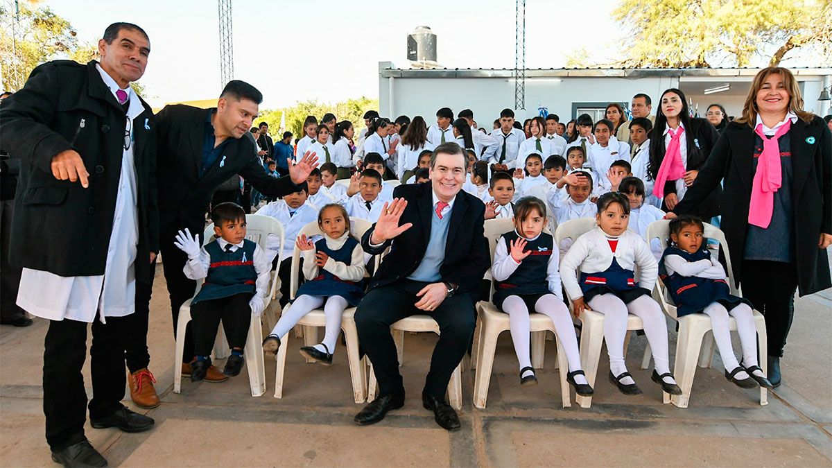 Junto con el gobernador estuvieron en el lugar el vicegobernador Carlos Silva Neder y los ministros de Desarrollo Social, Ángel Niccolai; de Educación, Mariela Nassif y de Obras Públicas, Aldo Hid. Además del comisionado municipal de Atoj Pozo, Leandro Galván.