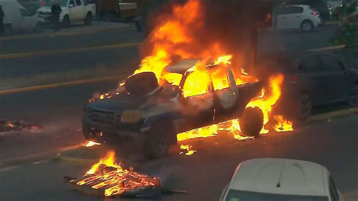 Un grupo de manifestantes prendió fuego un patrullero frente a una comisaría en la localidad de Loma Hermosa, del partido bonaerense de Tres de Febrero. Lo hicieron en medio de un reclamo por la muerte de su compañero Emanuel López Ledesma, el repartidor de delivery de 30 años que fue asesinado a sangre fría por dos delincuentes mientras trabajaba este domingo.