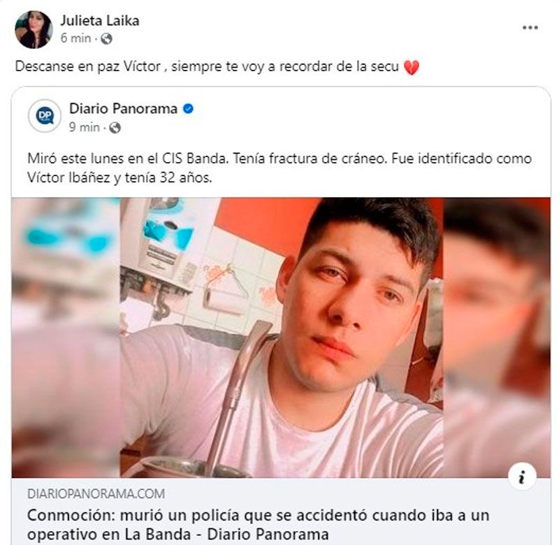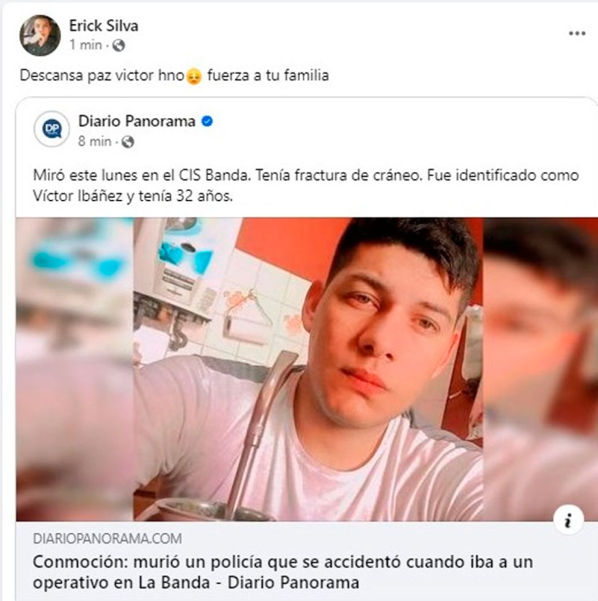Este lunes murió el policía Víctor Ibáñez luego de protagonizar un accidente de tránsito en La Banda. Su deceso causó tristeza y conmoción entre los que lo conocían, quienes lo expresaron en las redes sociales.