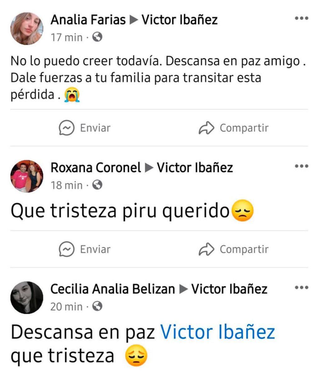 Compañeros de trabajo, amigos, conocidos del colegio secundario, expresaron su sorpresa por la tan repentina partida de Ibáñez, quien tenía 32 años.