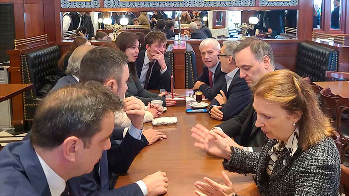 En un intento de mostrar distensión en medio de la crisis interna por los cambios en el Gabinete, Guillermo Francos reunió a los ministros en la confitería Pertutti, al frente de la Plaza de Mayo. A diferencia de los otros funcionarios, el jefe de Gabinete cruzó a pie desde la Casa Rosada acompañado por el tucumano Lisandro Catalán, que quedará a cargo de la Secretaría del Interior.