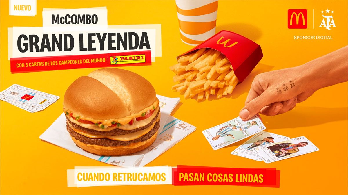 Es que la cadena multinacional más importante de comida rápida es sponsor digital de la AFA y para alentar a la Selección campeona del Mundo lanzó la nueva “Grand Leyenda” con sabores bien argentinos y un regalito extra para los fans de la Scaloneta: 5 cartas desarrolladas por Panini para jugar al truco.