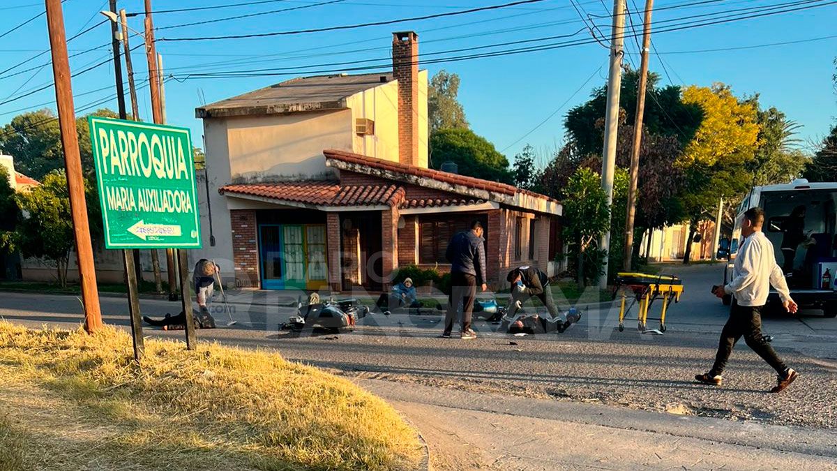 Minutos antes de las 9 de este sábado, un violento choque de motos alteró la calma en el barrio Los Inmigrantes y dejó tres personas heridas y múltiples daños materiales.