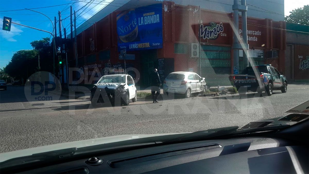 En la tarde de hoy, un aparatoso choque entre dos vehículos, un Volkswagen Up y un Ford Ka, sacudió la tranquila intersección de las calles Necochea y Quintana, en la ciudad de La Banda.