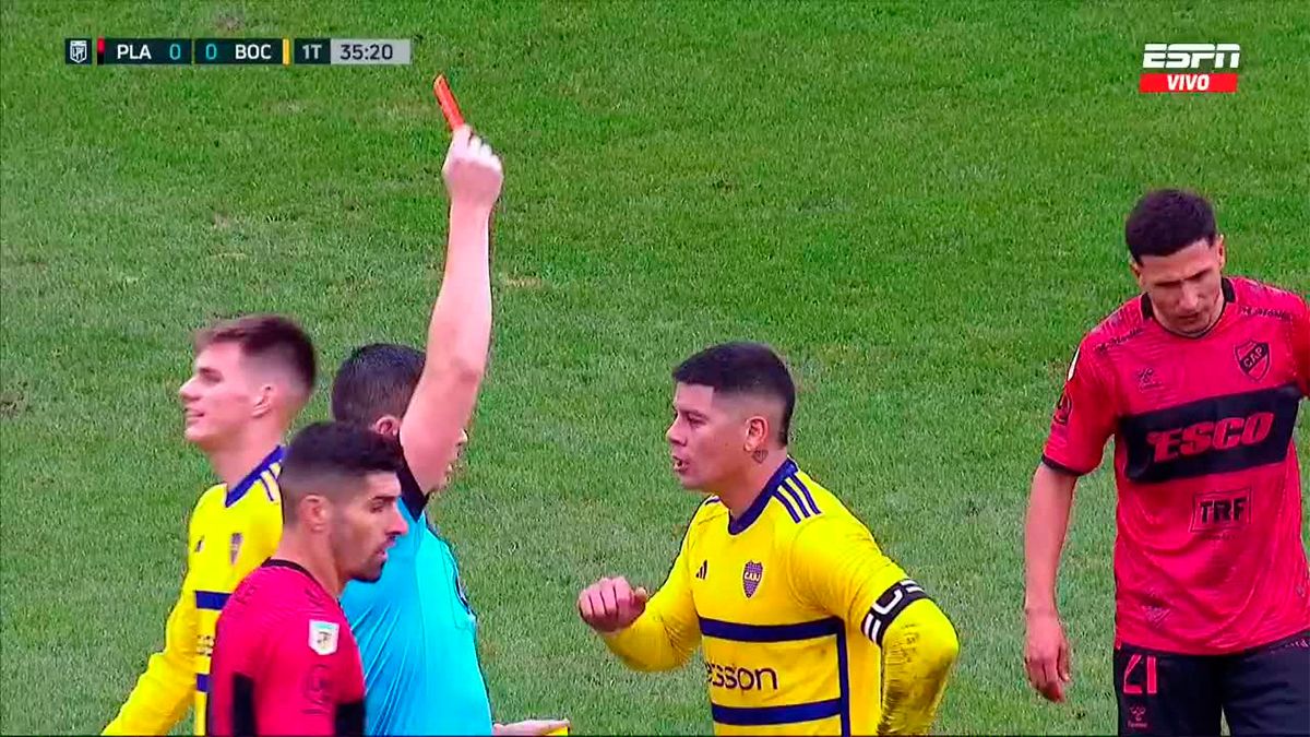 Pero lejos de bajar un cambio, Rojo, fiel a su estilo de jugar al límite, metió un topetazo luego de perderla en mitad de la cancha -para evitar la contra del Calamar- y el juez, en esta oportunidad, sí le mostró una nueva tarjeta amarilla que derivó en que Boca quede con uno menos cuando todavía transcurría la primera etapa (0-0).
