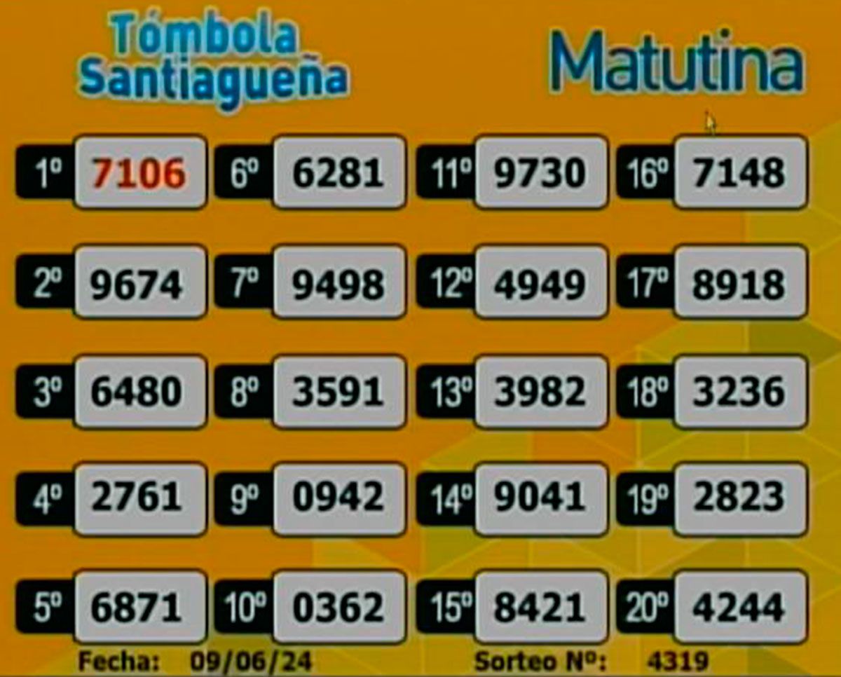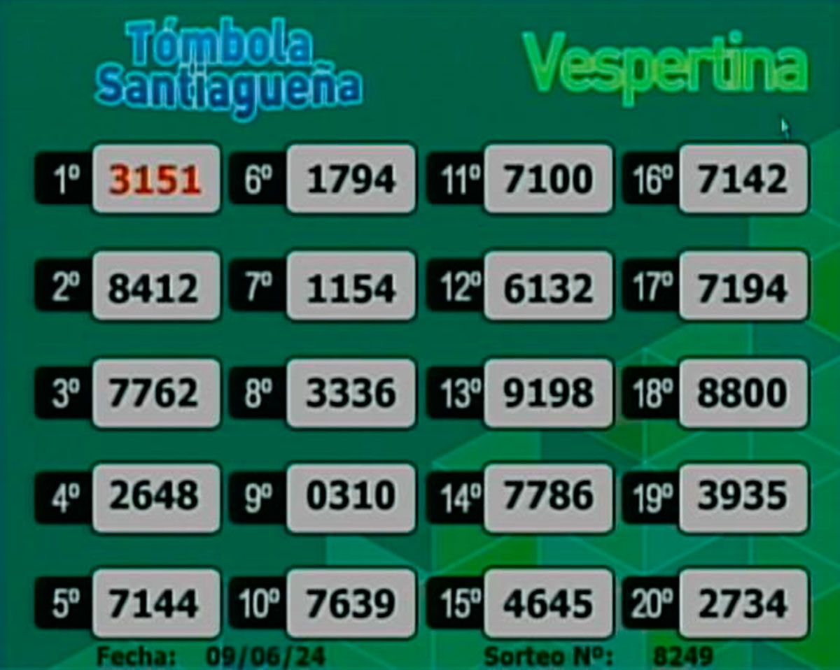 Este domingo 9 de junio del 2024, como todos los días, se llevó a cabo un nuevo sorteo de la Tómbola Santiagueña.