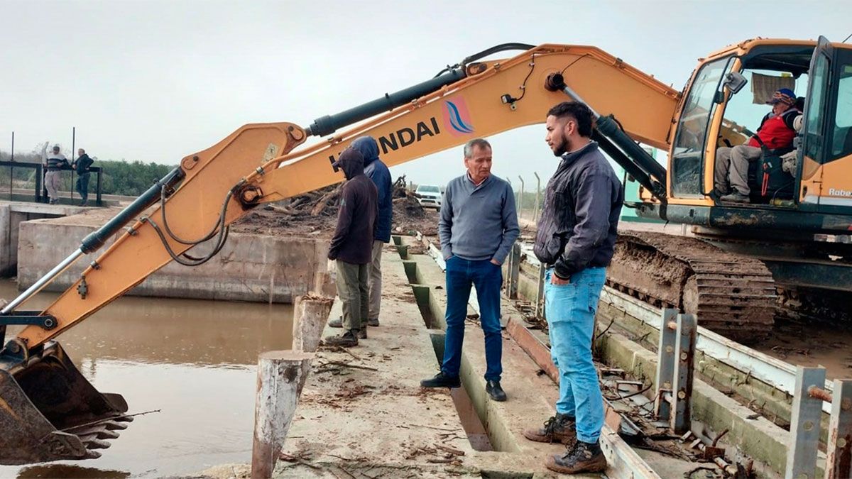 El intendente Jorge Leguizamón supervisó los trabajos de limpieza y mantenimiento del azud.