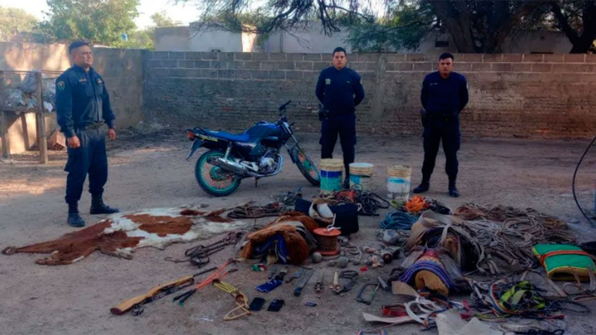 Durante la inspección, los oficiales confirmaron la presencia del ternero y además encontraron cuatro cerdos en un pozo, vísceras de animales, cuero fresco, varias herramientas utilizadas para la faena y un arma de fuego. Ante estos hallazgos, se informó a la fiscal de turno, Dra. Matach, quien ordenó la devolución del animal a su propietario, el secuestro de los elementos encontrados, incluyendo una motocicleta, y el traslado del individuo a la sede policial.