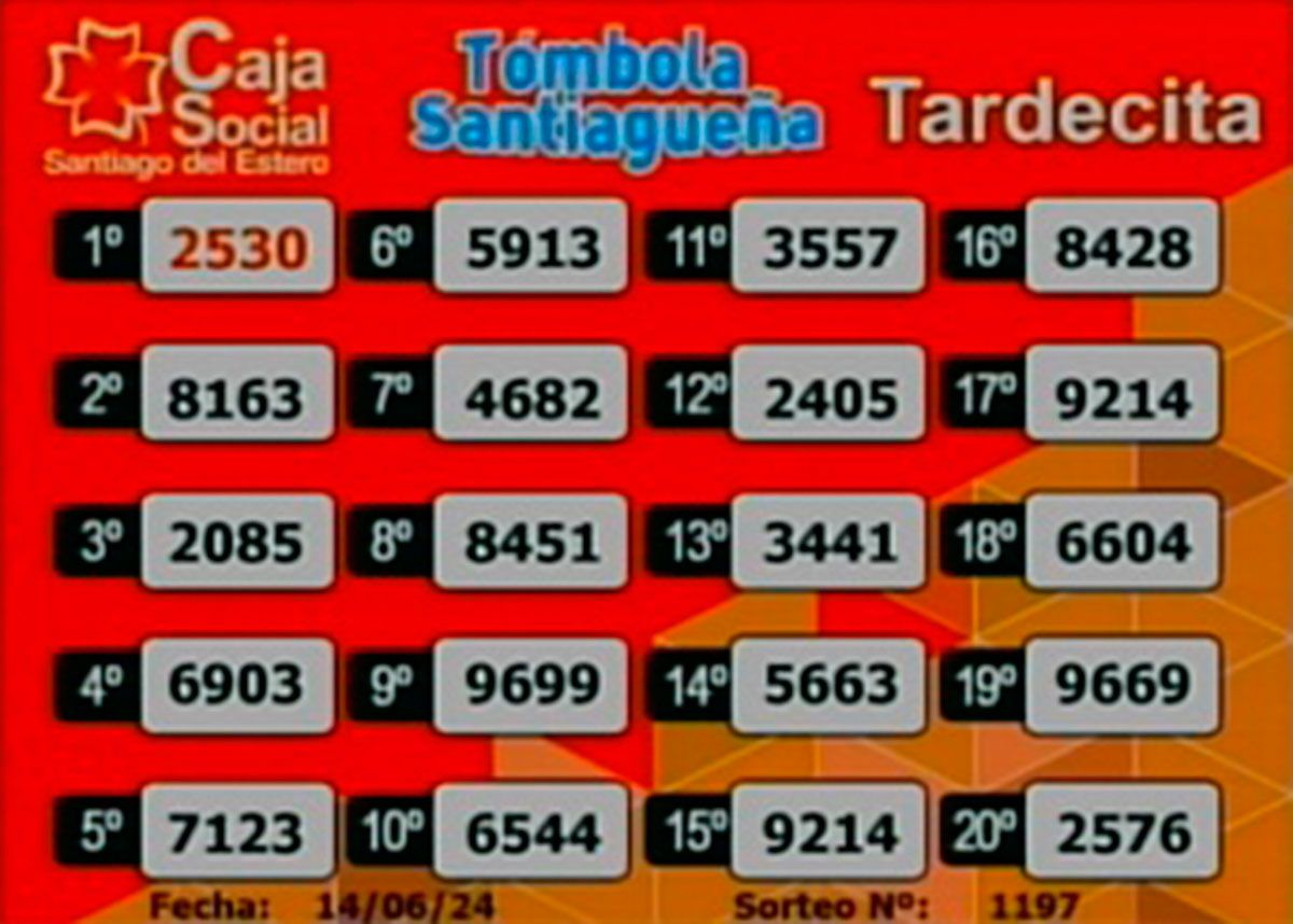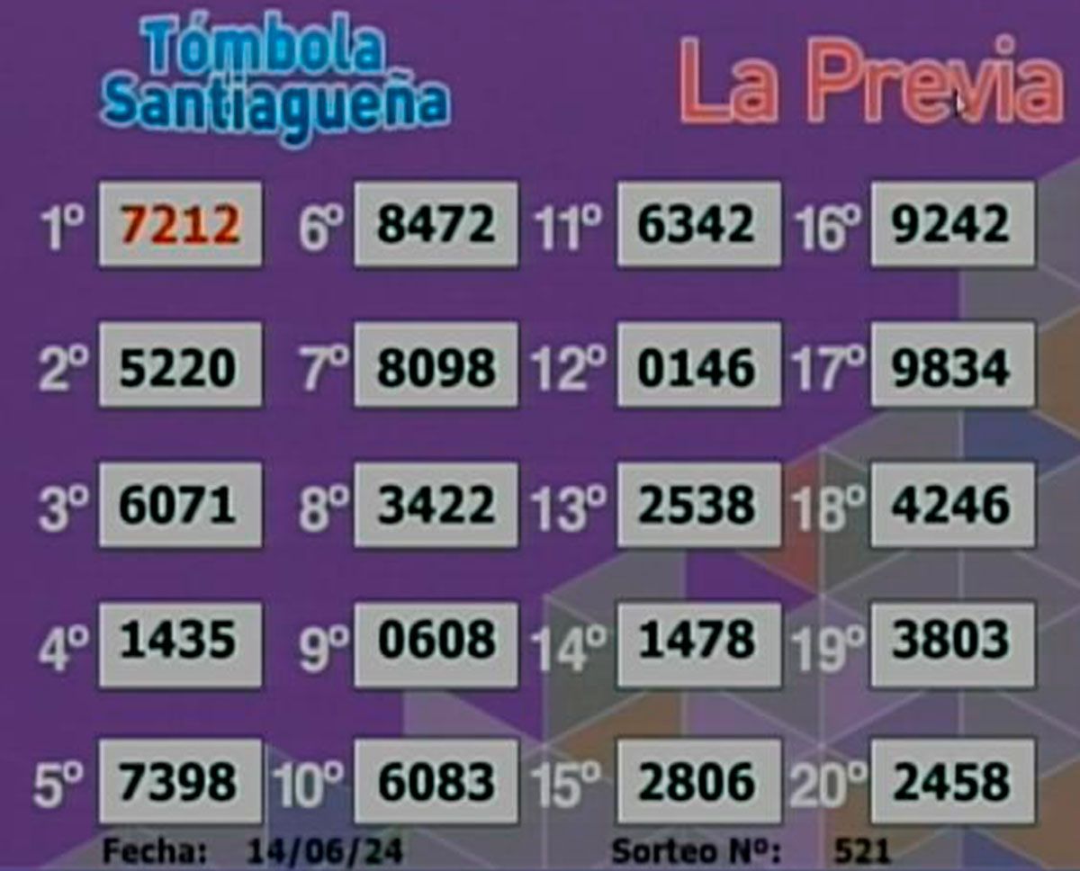 Este viernes 14 de junio del 2024, como todos los días, se llevó a cabo un nuevo sorteo de la Tómbola Santiagueña.