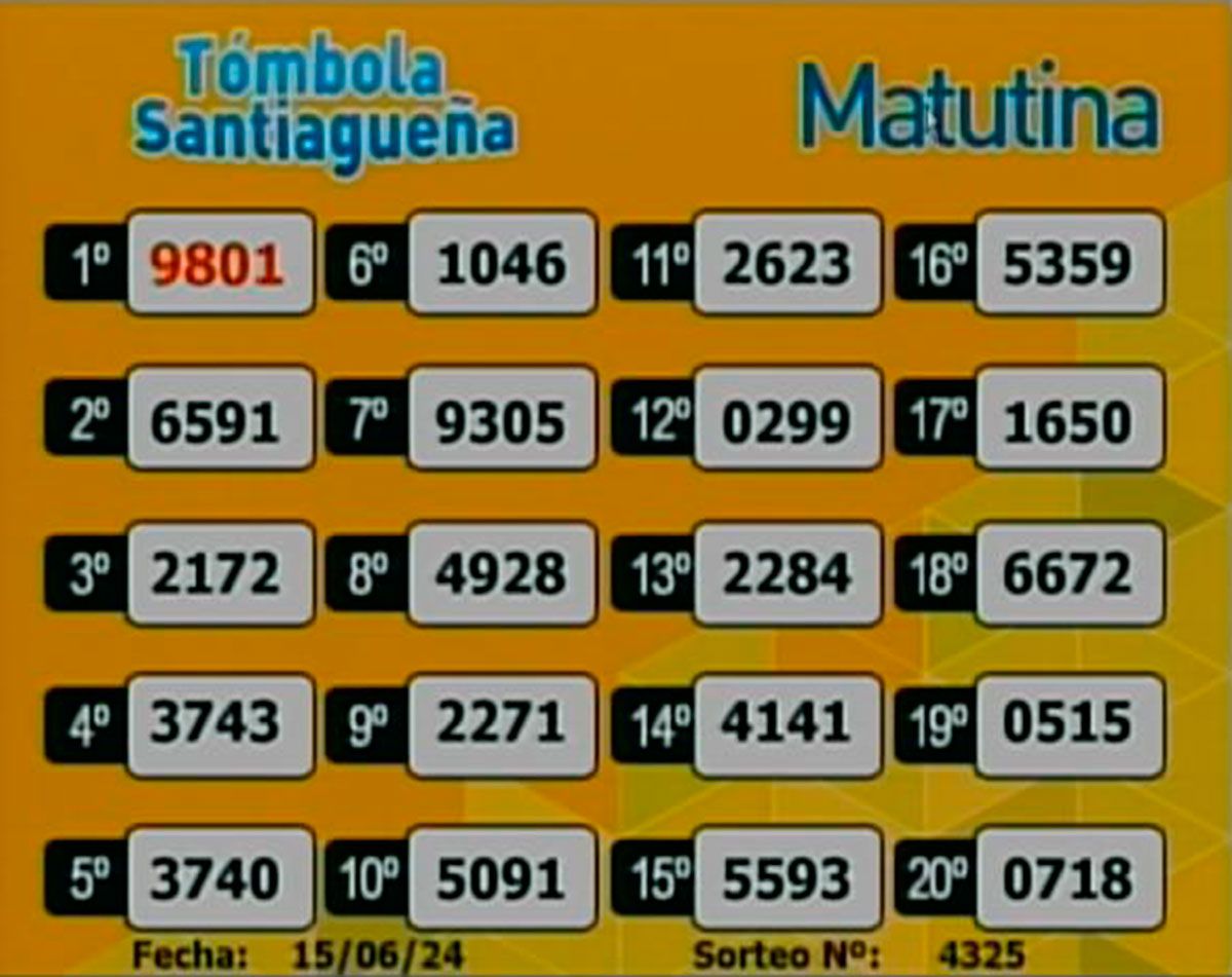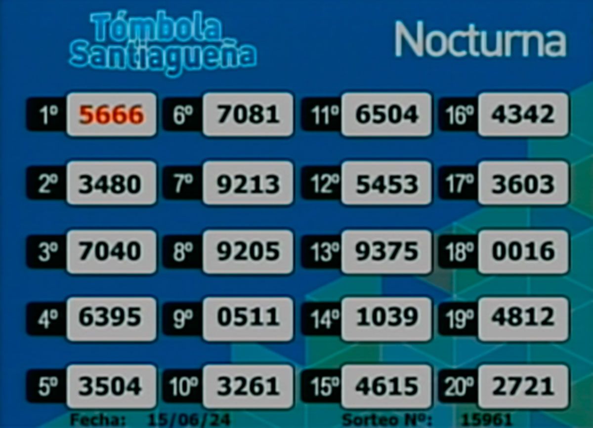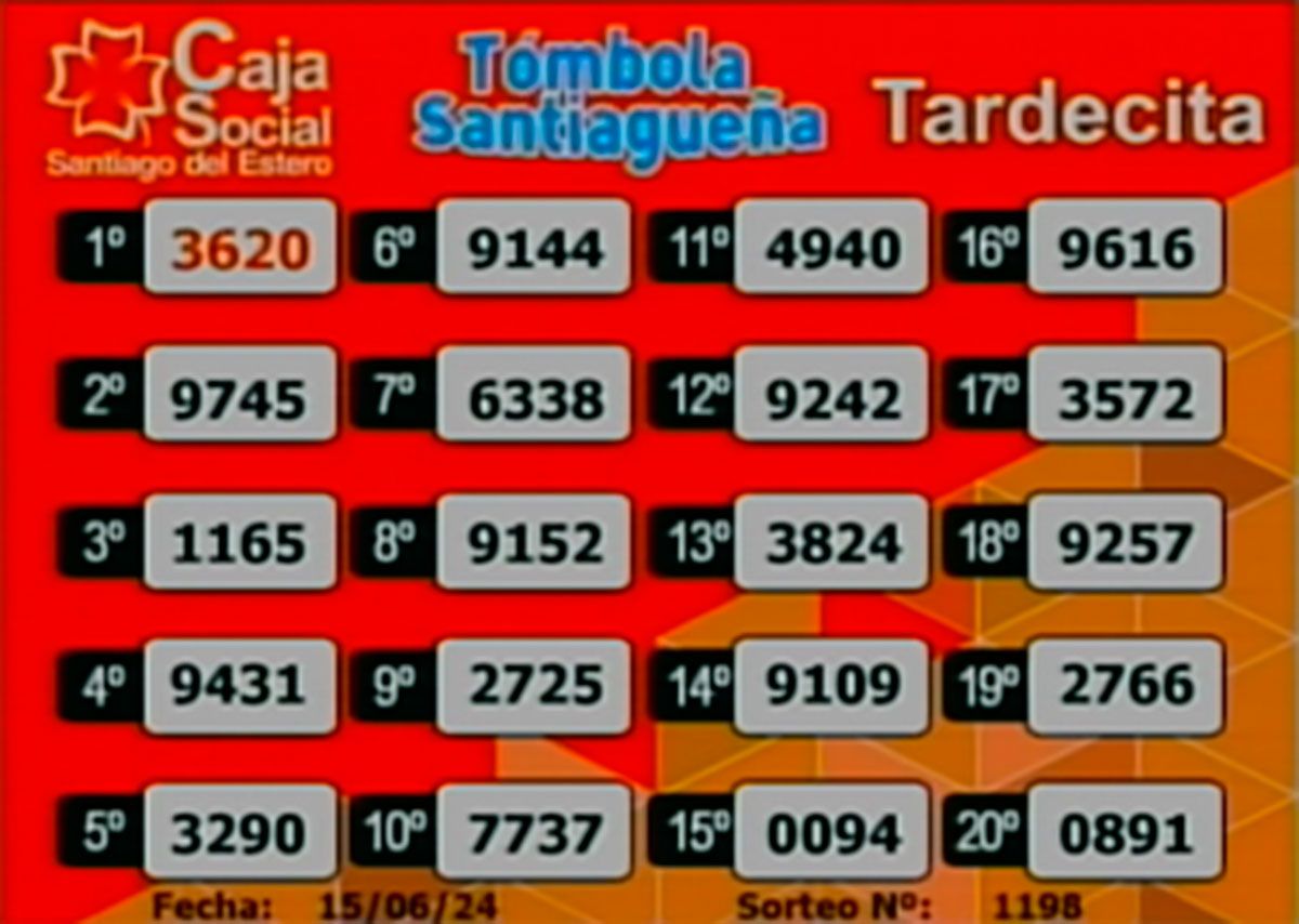 Este sábado 15 de junio del 2024, como todos los días, se llevó a cabo un nuevo sorteo de la Tómbola Santiagueña.