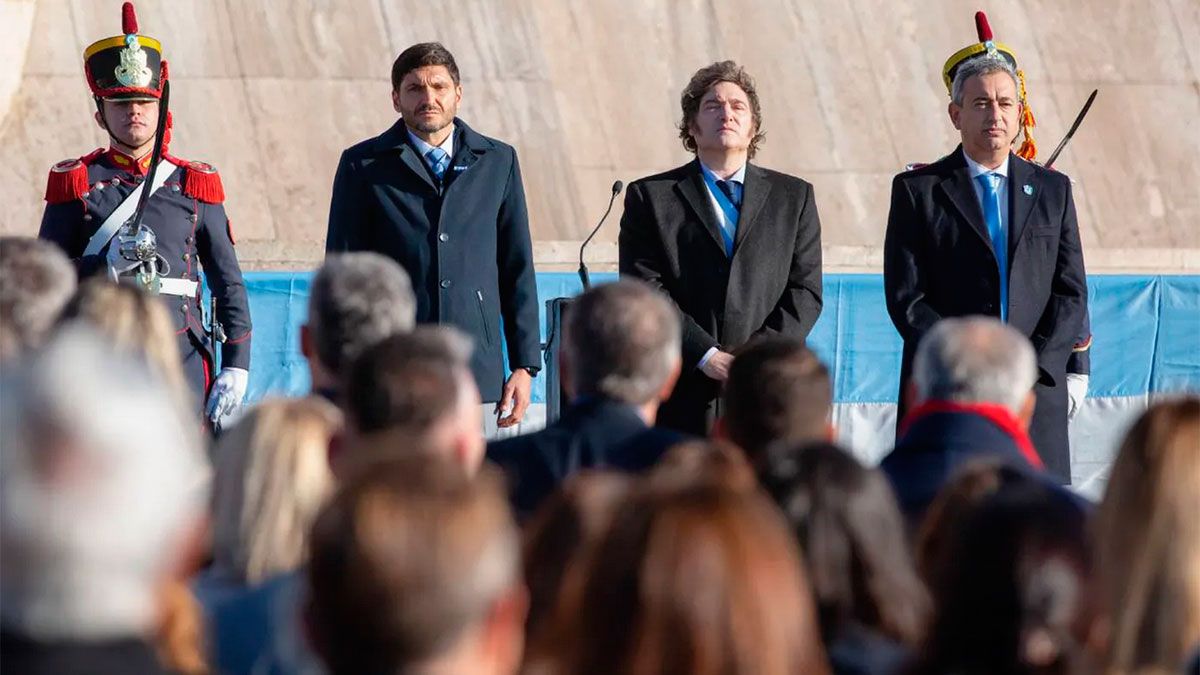 El presidente Javier Milei encabezó el acto por el Día de la Bandera en Rosario, junto al gobernador de Santa Fe, Maximiliano Pullaro, y al intendente, Pablo Javkin, en el Monumento Nacional a la Bandera.