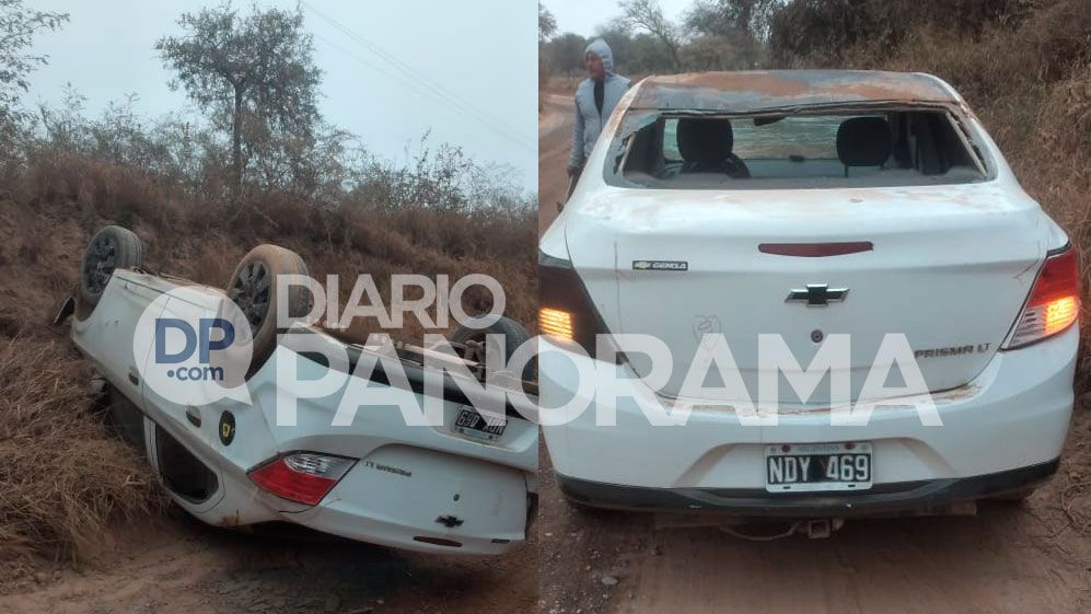 Hacia el lugar partió una comisión en la unidad U-1034, quienes al llegar al lugar encontraron una gran cantidad de gente y un Chevrolet Prisma volcado y asentado sobre su techo.