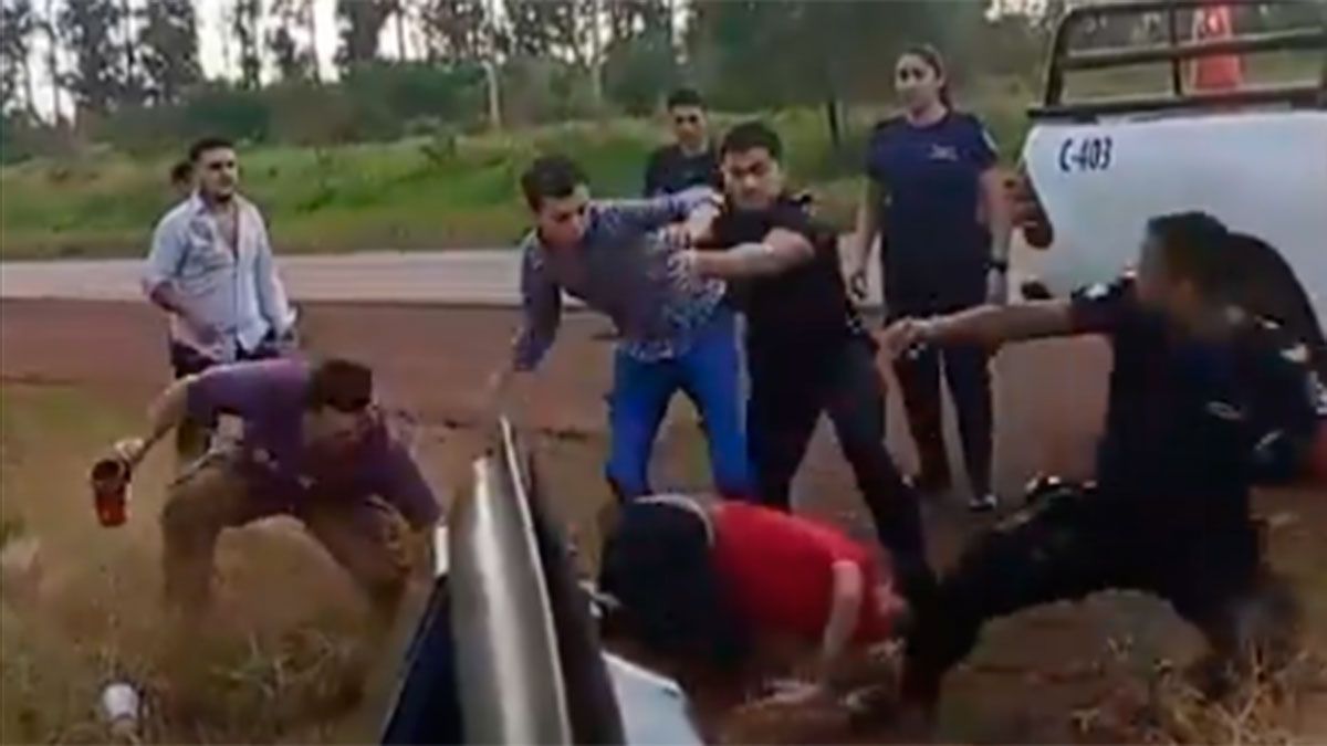 En las últimas horas se viralizó un insólito video en el que efectivos de la policía intentaron controlar a un grupo de jóvenes pero terminaron a las trompadas.