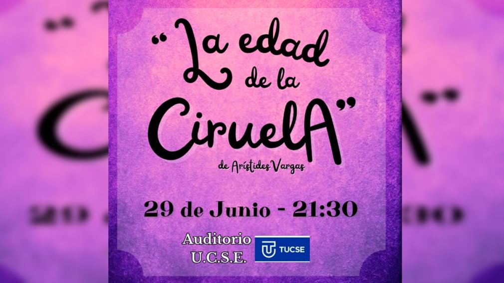 Una imperdible propuesta teatral tendrá lugar este sábado 29 de junio en el Salón Auditorio de la Universidad Católica de Santiago del Estero. Sí, desde las 21.30, “La Edad de la Ciruela”, una obra de Arístides Vargas, hará viajar a través del tiempo a todos los que se sumen a la propuesta que cuenta con la participación de un elenco de ocho artistas.