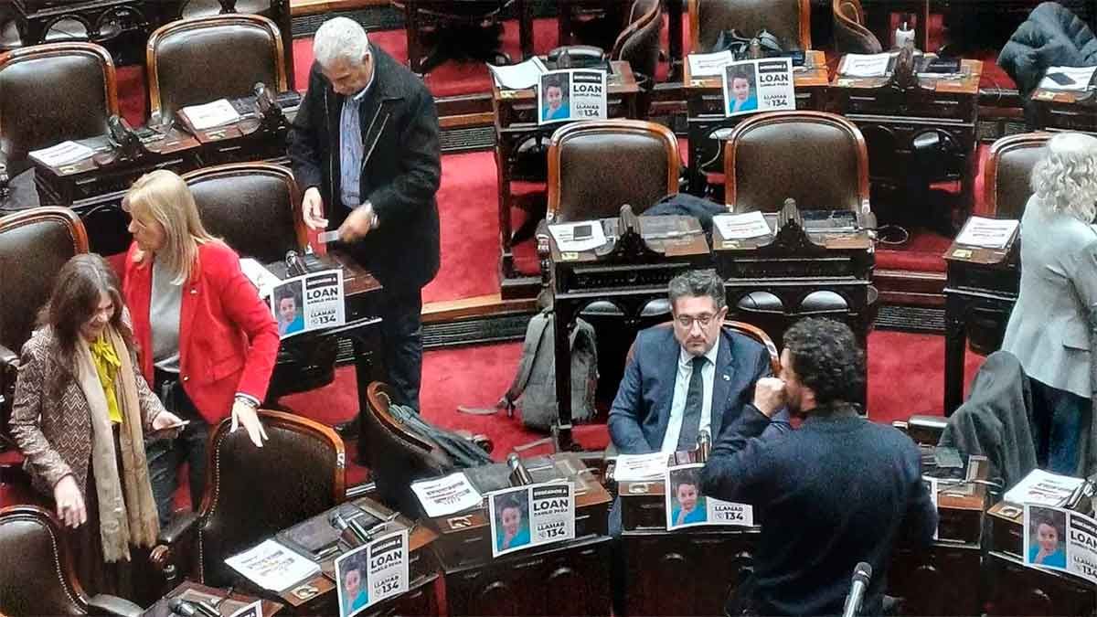 La desaparición de Loan Danilo Peña en Corrientes se filtró durante la sesión por la Ley Bases y el paquete fiscal en Diputados. Este jueves, varios legisladores -en su mayoría de Unión por la Patria y la izquierda- colocaron carteles en sus bancas con una foto del nene de 5 años y la campaña para encontrarlo.