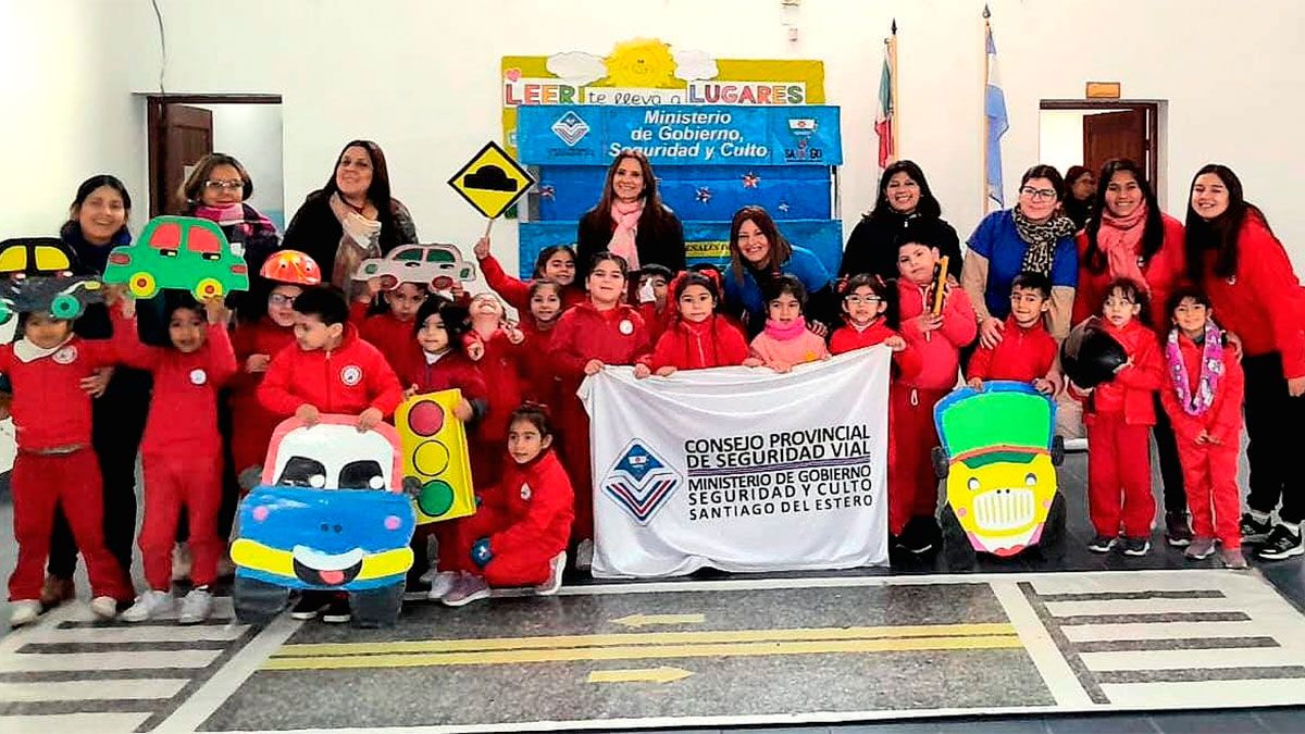 Como parte del trabajo que lleva adelante el área de Seguridad Vial del Ministerio de Gobierno de la provincia, el equipo de Capacitación del Nivel Inicial realizó un taller destinado a los alumnos del Jardín de Infantes "Juan Pablo II" del barrio Almirante Brown de la ciudad Capital.