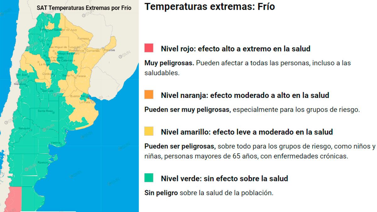 Las autoridades del SMN remarcaron que las bajas temperaturas podrían provocar complicaciones en la salud de los habitantes, por lo que emitieron una serie de recomendaciones para evitar ponerse en riesgo. Asimismo, remarcaron la importancia de acudir al médico, si se detectan alteraciones en el estado de ánimo o malestares.