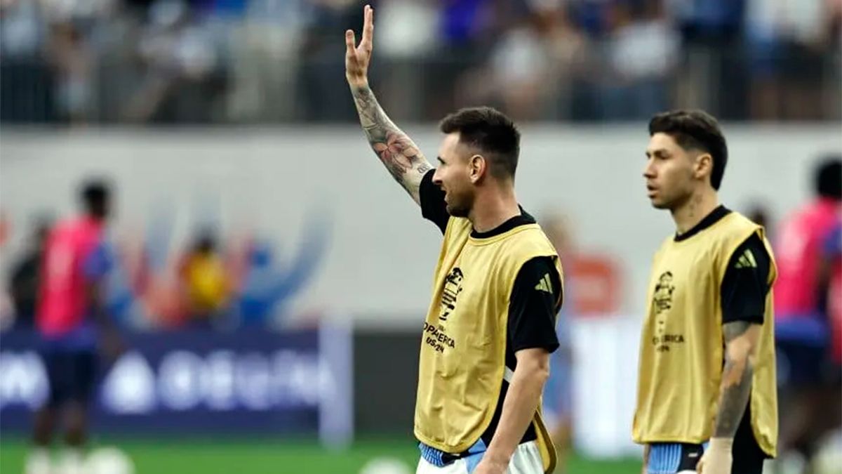 Lionel Messi vuelve a la titularidad esta noche en los cuartos de final de la Copa América 2024 frente a Ecuador y en el calentamiento previo vivió un tierno momento junto a su familia, que lo alentaba desde la platea. Buscando con la vista adonde se encontraban los suyos en el estadio, dio con sus hijos Thiago, Mateo y Ciro bien flanqueados por su esposa Antonela Roccuzzo.