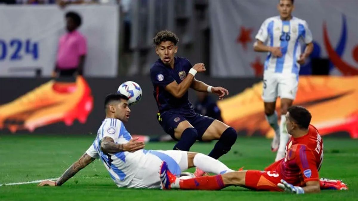 El bravo inicio del partido -en un irregular césped del NRG Stadium- fue parecido al del debut ante Canadá. La primera ocasión de riesgo se dio a los seis minutos, cuando el marplatense contuvo el avance de Moisés Caicedo que terminó punteando hacia atrás Cristian Romero.