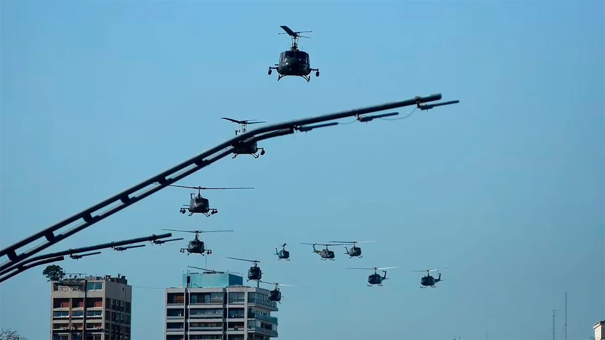 Por Avenida del Libertador desfilaron unos 7.000 efectivos y se movilizaron blindados, motos, camiones y camionetas con capacidad misilística. Antes se realizó el Tedeum en la catedral Metropolitana.