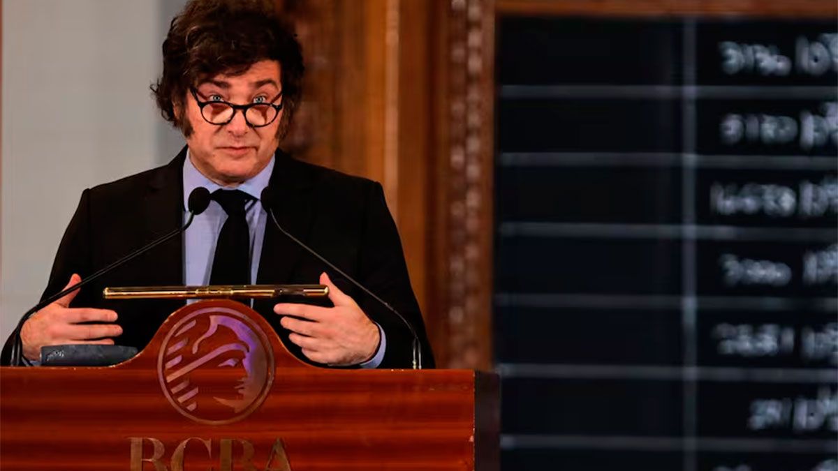 El presidente Javier Milei, encabezó esta tarde un discurso en la Bolsa de Comercio, en el marco de los 170 años de la institución, tras la conferencia que brindó el mandatario en la vigilia por el Pacto de Mayo, en Tucumán. A lo largo del acto, el mandatario apuntó contra algunos economistas que cuestionan la gestión de Gobierno, volvió a destacar el rol de Luis Caputo, a quien calificó como “el mejor ministro de la historia” y cargó contra los “degenerados fiscales” a quienes responsabilizó por la suba de precio del dólar.