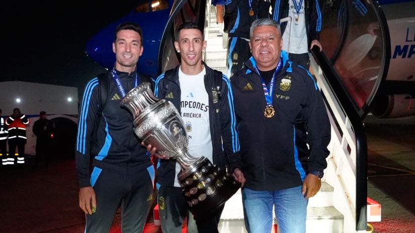 Después de consagrarse ante Colombia en el certamen continental, el equipo de Scaloni arribó desde Estados Unidos.