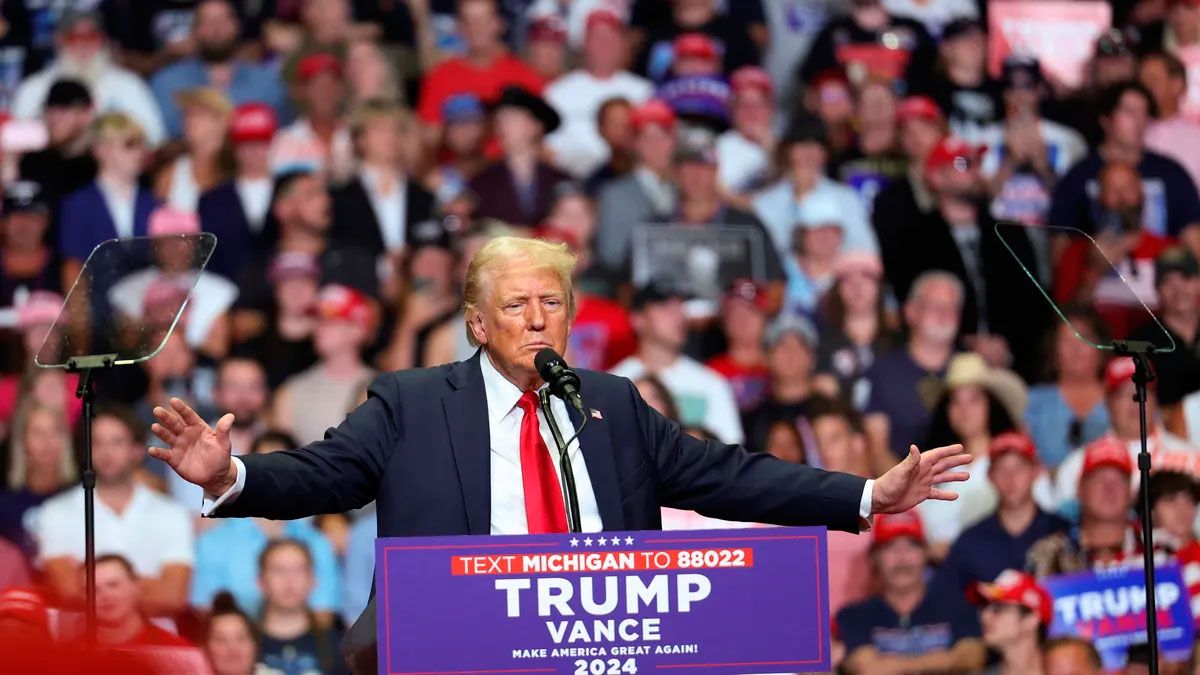 El ex presidente de Estados Unidos y candidato republicano se presentó con su candidato a vice, J.D. Vance, en un mitin en Michigan.