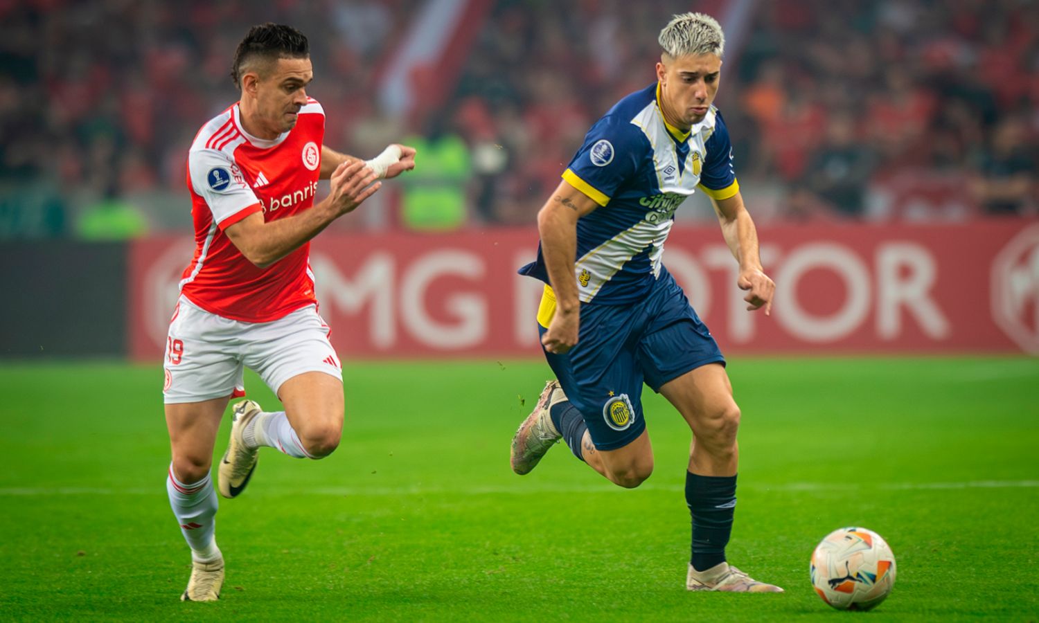 A partir del gol de Sández, el trámite de la primera mitad cambió. Internacional seguía manejando la posesión de la pelota a su antojo, aunque ya no lastimaba a un Central que defendía acoplado y de gran manera. A su vez, el equipo rosarino empezó a recuperar la pelota con mayor frecuencia y jugar pelotazos largos buscando a los delanteros Jaminton Campaz, Marco Ruben y Enzo Copetti, aunque dichos pases no eran tan precisos.