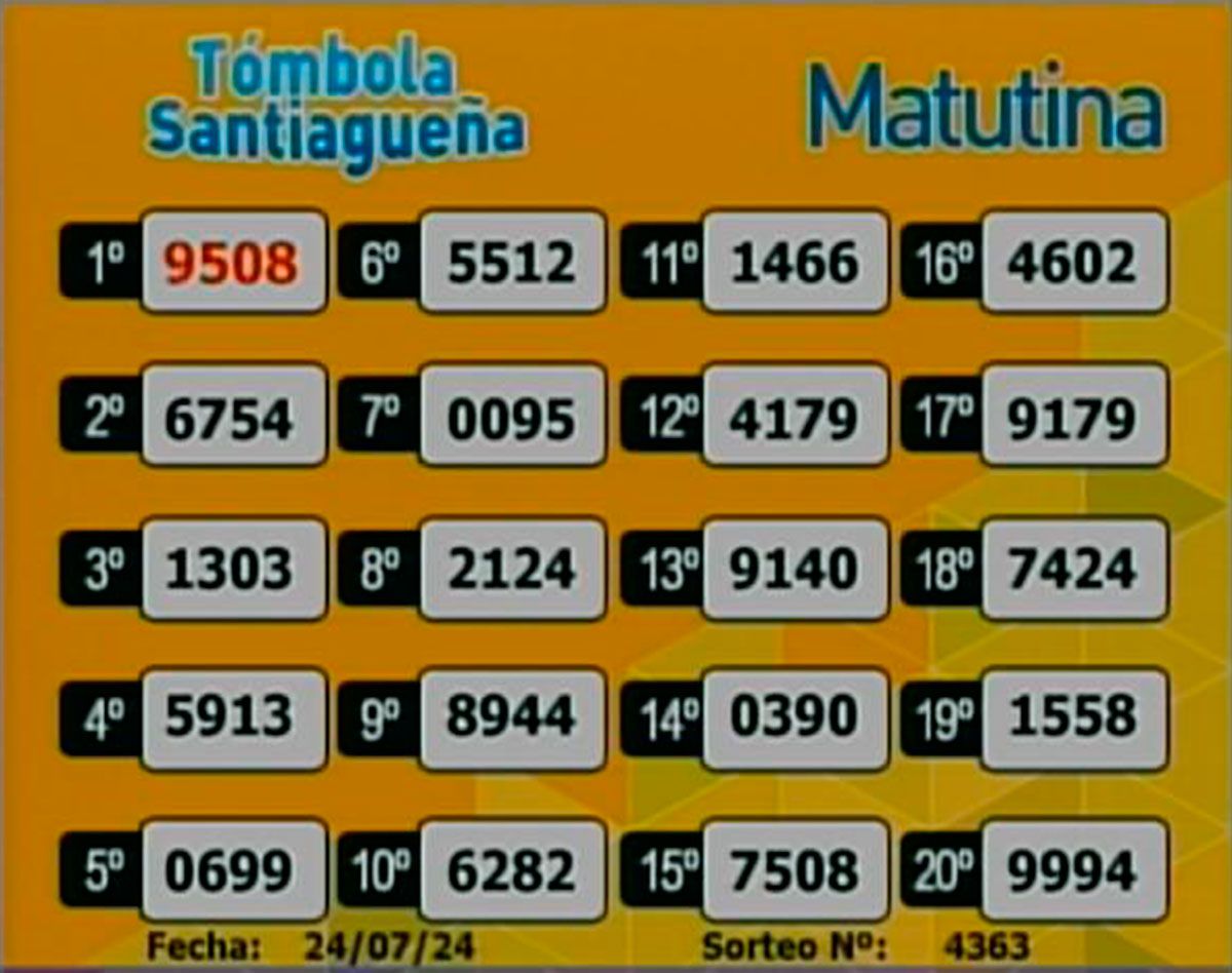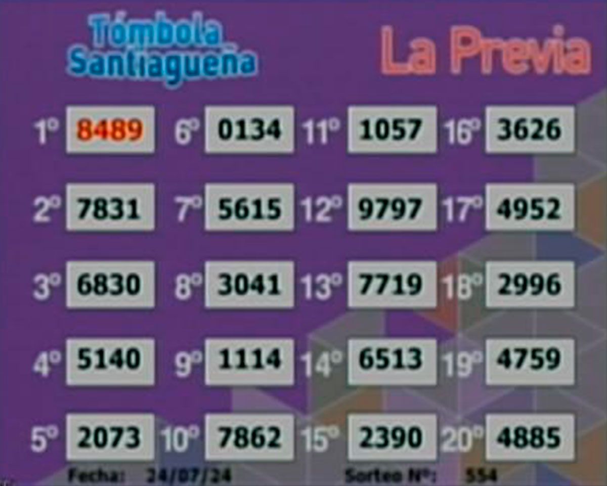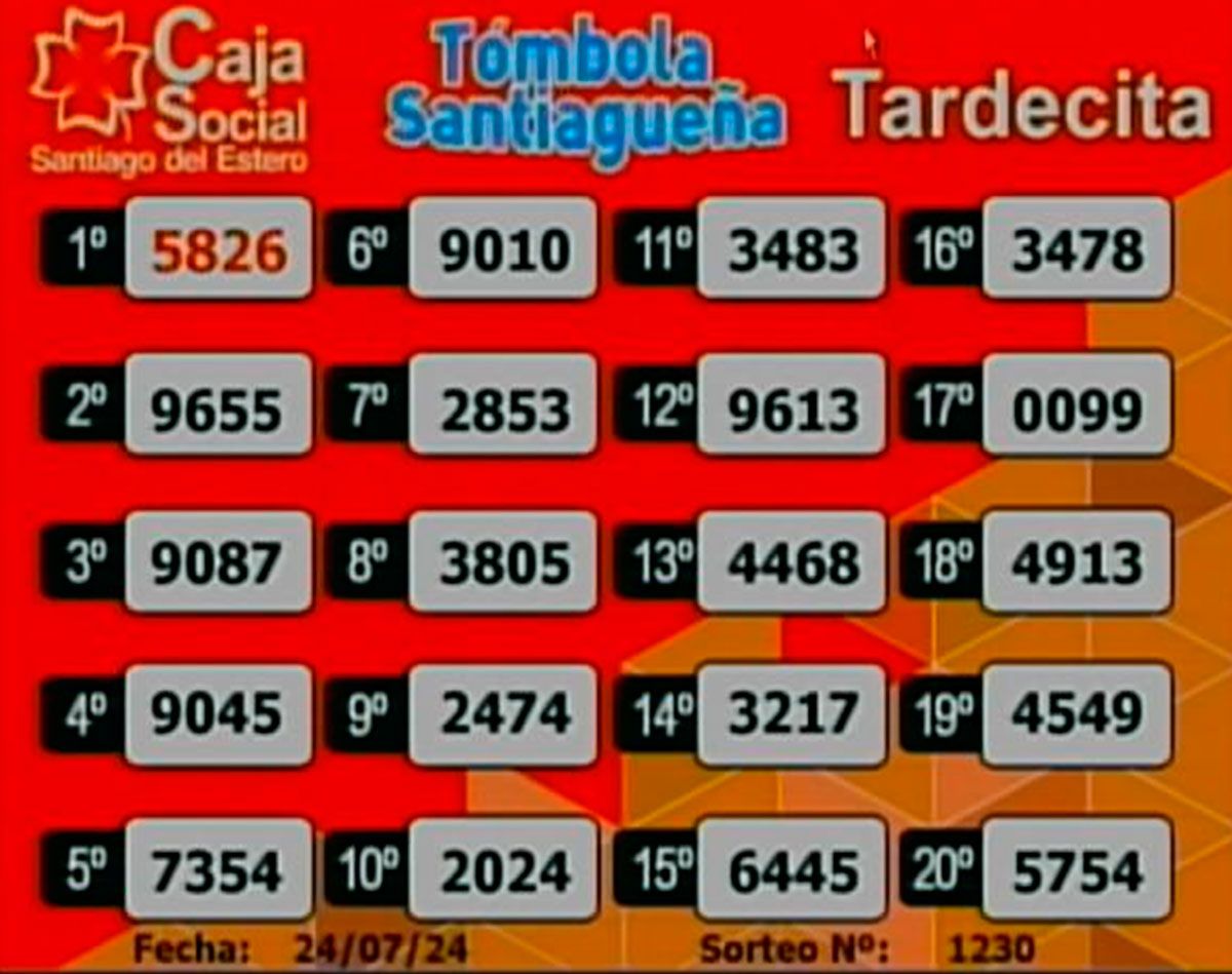 Este miércoles 24 de julio del 2024, como todos los días, se llevó a cabo un nuevo sorteo de la Tómbola Santiagueña.