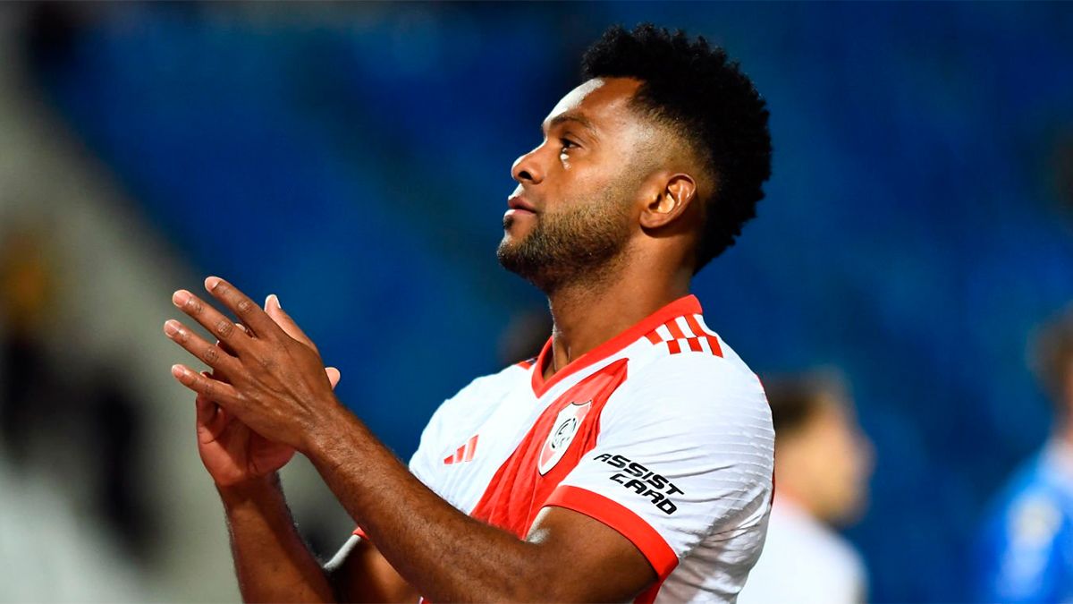 El colombiano adelantó a los dirigidos por Martín Demichelis unos segundos después de que se cumplieran los primeros 10 minutos del encuentro. Tras un centro de Franco Mastantuono que despejó la defensa del Tomba, el delantero capturó el rebote y la colocó arriba del arco de Franco Petroli, quien fue su compañero de plantel hace unos años, antes de que se marchara al conjunto mendocino.