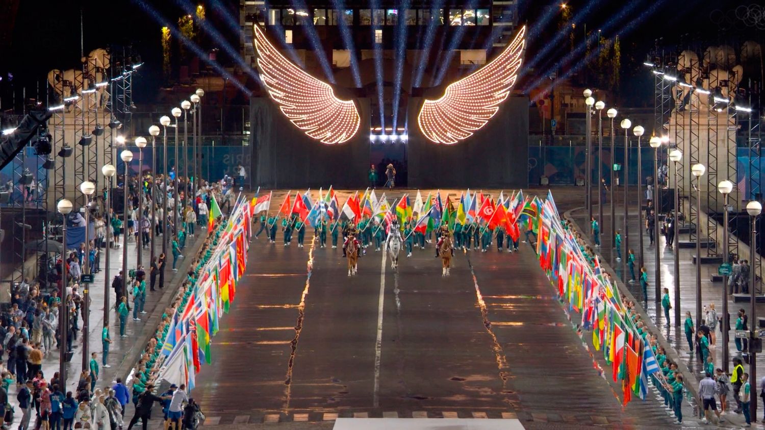 En el clip inicial participó ni más ni menos que Zinedine Zidane, partícipe de un recorrido por las calles y el metro de París para hacer llegar la antorcha al Sena, donde se desarrolló el gran desfile. Obviamente, desde un especio especial se presentaron también a Emmanuel Macron y Thomas Bach, presidente de Francia y del Comité Olímpico Internacional, respectivamente.