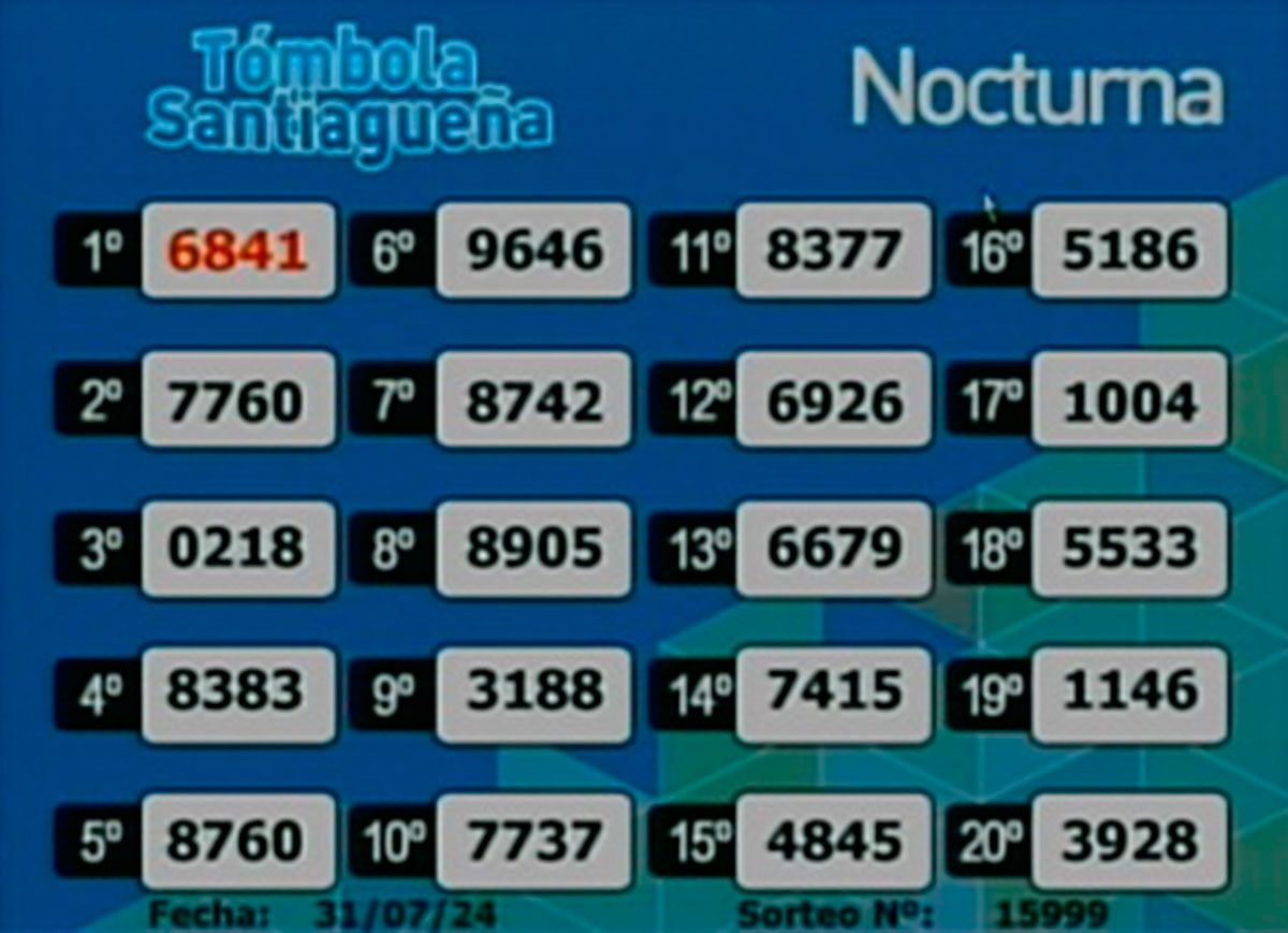 Este miércoles 31 de julio del 2024, como todos los días, se llevó a cabo un nuevo sorteo de la Tómbola Santiagueña.