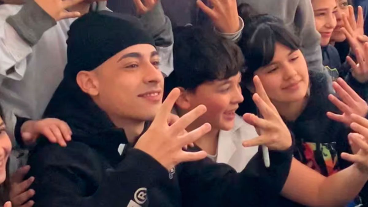 El rapero se hizo presente en el colegio donde estudió en su infancia. La alegría de los niños y la iniciativa solidaria para las instituciones de la zona.