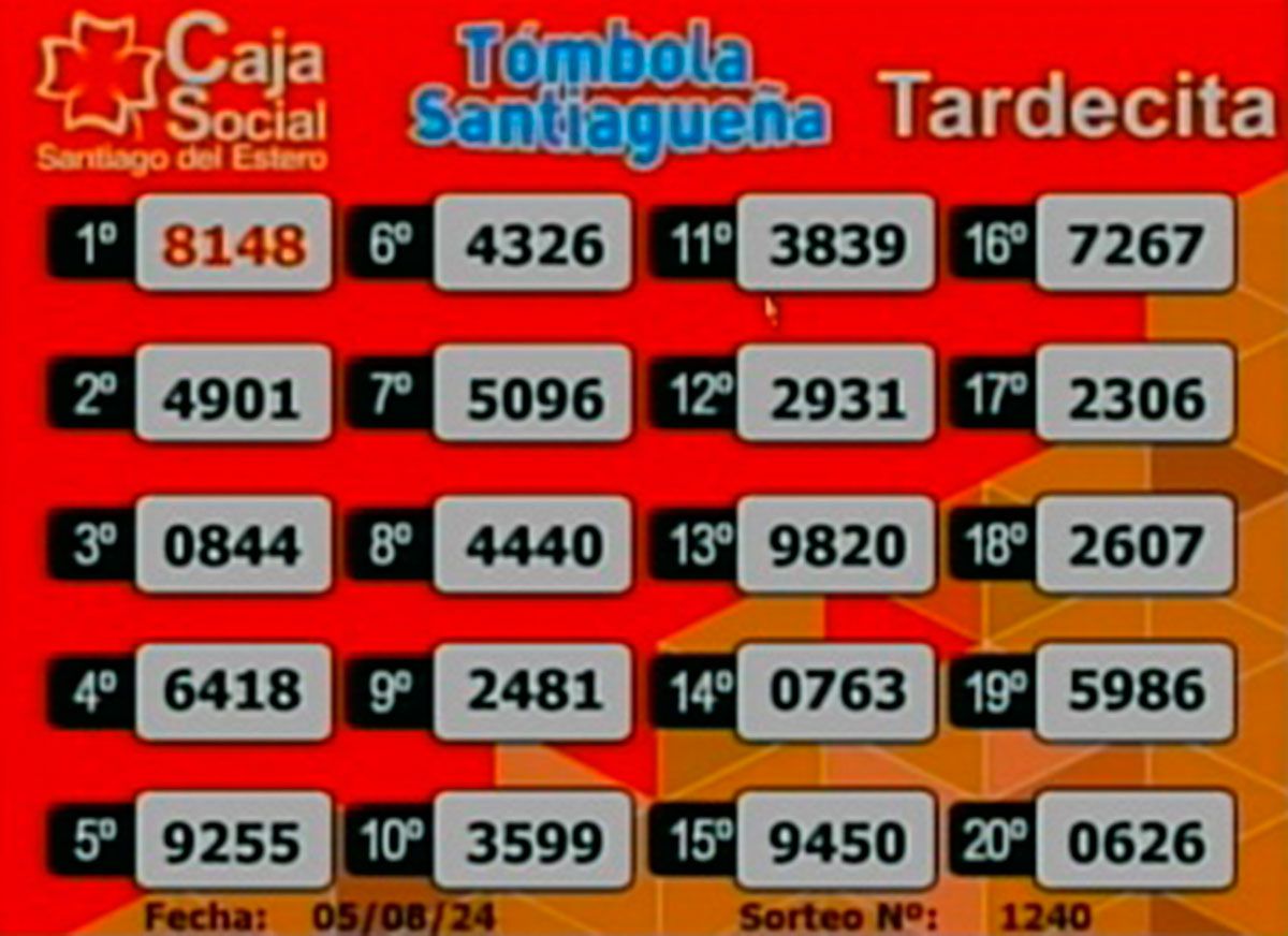 Este lunes 5 de agosto del 2024, como todos los días, se llevó a cabo un nuevo sorteo de la Tómbola Santiagueña.
