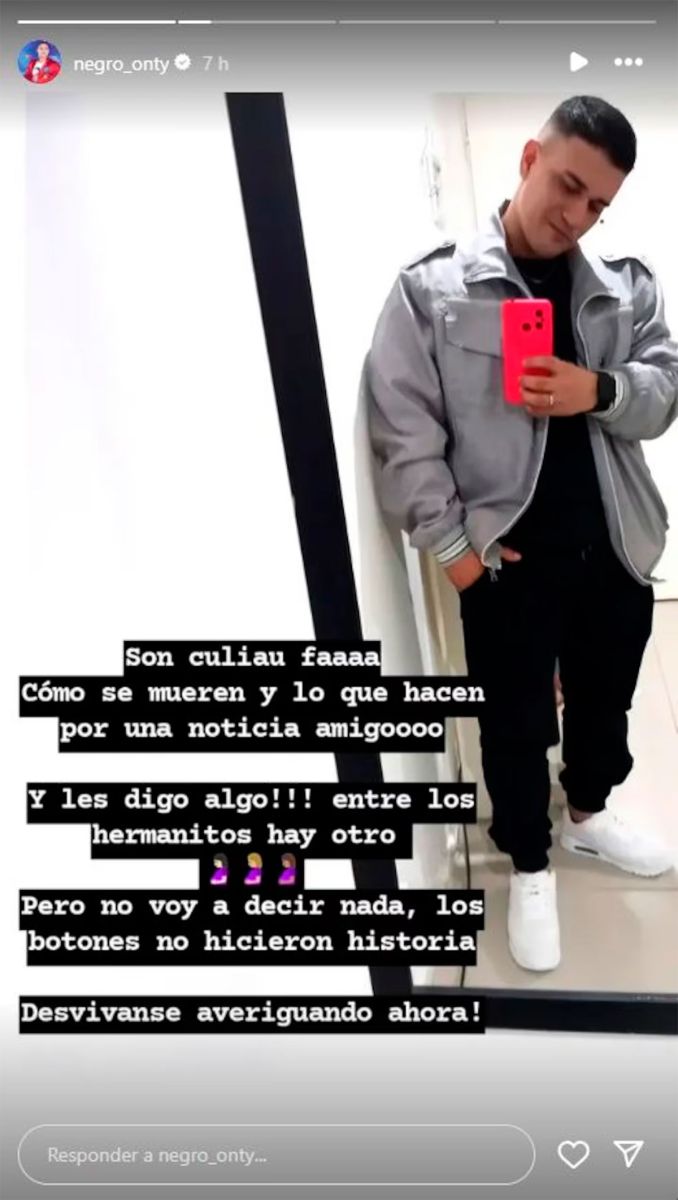 Los rumores habían estallado cuando Onty arremetió contra sus excompañeros y publicó: “Cómo se mueren y lo que hacen por una noticia. Y les digo algo, entre los hermanitos hay otro bebé. Pero no voy a decir nada, los ‘botones’ no hicieron historia. ¡Desvívanse averiguando, ahora!”. Tras los dichos de Cata, no salió a terminar con el misterio ni a confirmar si efectivamente se trataba de una fake news.