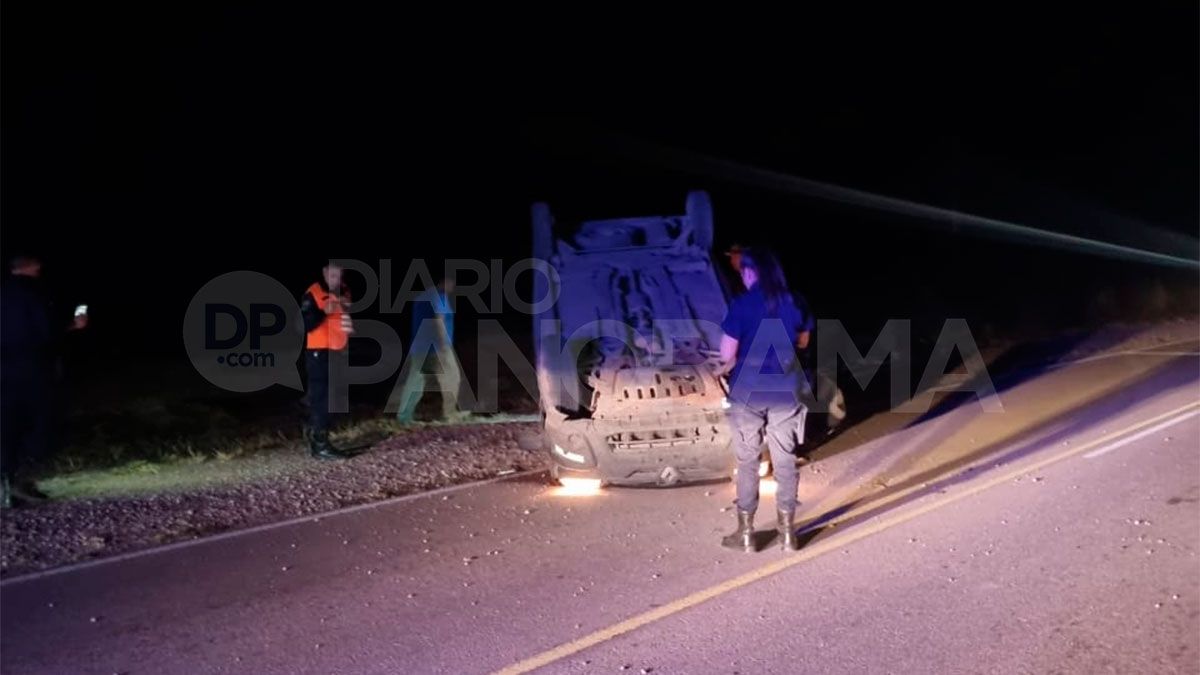 Un fuerte accidente se produjo durante la noche de este lunes en la Ruta 5, en la localidad de Cuyoj, en donde un automóvil volcó y sus dos ocupantes resultaron heridos.