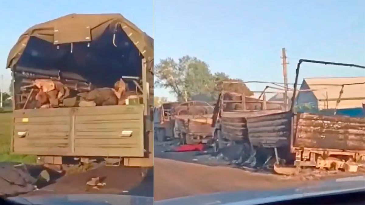 Unos trece camiones, que se cree transportaban reservas que Rusia intentó dirigir a la zona de incursión en Kursk, fueron destruidos en Oktiabrskoe, a 28 km de la atacada Korenevo, según confirmó DeepState, un portal ucraniano que analiza a diario los acontecimientos en la línea del frente.