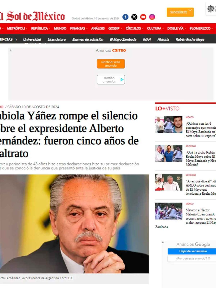 En simultáneo, El Sol de México realizó un repaso sobre los últimos cinco años de la pareja, tramo en el que habrían comenzado los maltratos de parte de Fernández en contra de Yañez. Además, hicieron hincapié en los motivos por los que había decidido no abandonar el domicilio presidencial tras separarse del ex mandatario: “Si yo me iba de Olivos iba a ser un escándalo”, analizó sobre lo perjudicial que hubiera sido durante el desarrollo de la campaña electoral del 2023.