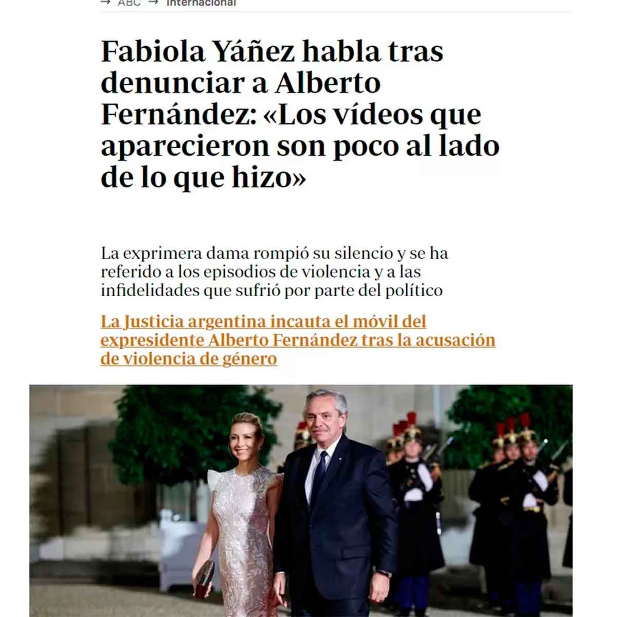 Con respecto a los medios de comunicación europeos, uno de los primeros en darle repercusión a las declaraciones de Fabiola fue ABC, de España, nota que enfocaron en hacerle eco a las múltiples infidelidades que el ex mandatario habría cometido a lo largo de la relación que mantuvieron, los inicios del declive y el comienzo de los actos que atentaron contra la integridad física de la también actriz argentina.