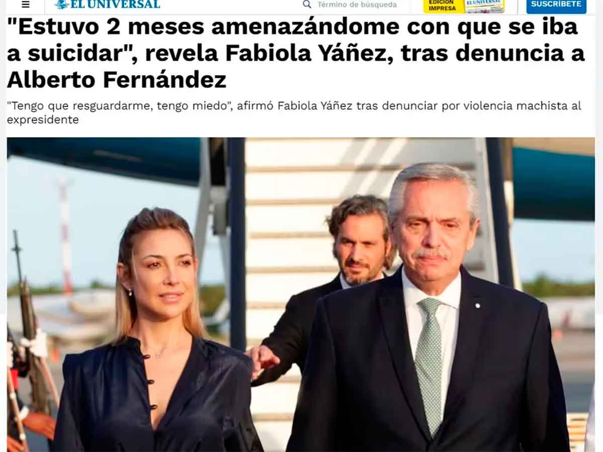 Por su parte, El Universal de México destacó el costado más oscuro de la situación que atravesó Yáñez previo a radicar la denuncia por violencia de género. “Estuvo dos meses amenazándome con que se iba a suicidar”, citaron sobre el momento en el que contó sobre las llamadas que le hacía casi todos los días para convencerla de que no iniciara el proceso penal. Para ese entonces, la periodista ya había sido indagada por la Justicia argentina y los detalles de la audiencia le habían llegado al ex mandatario.