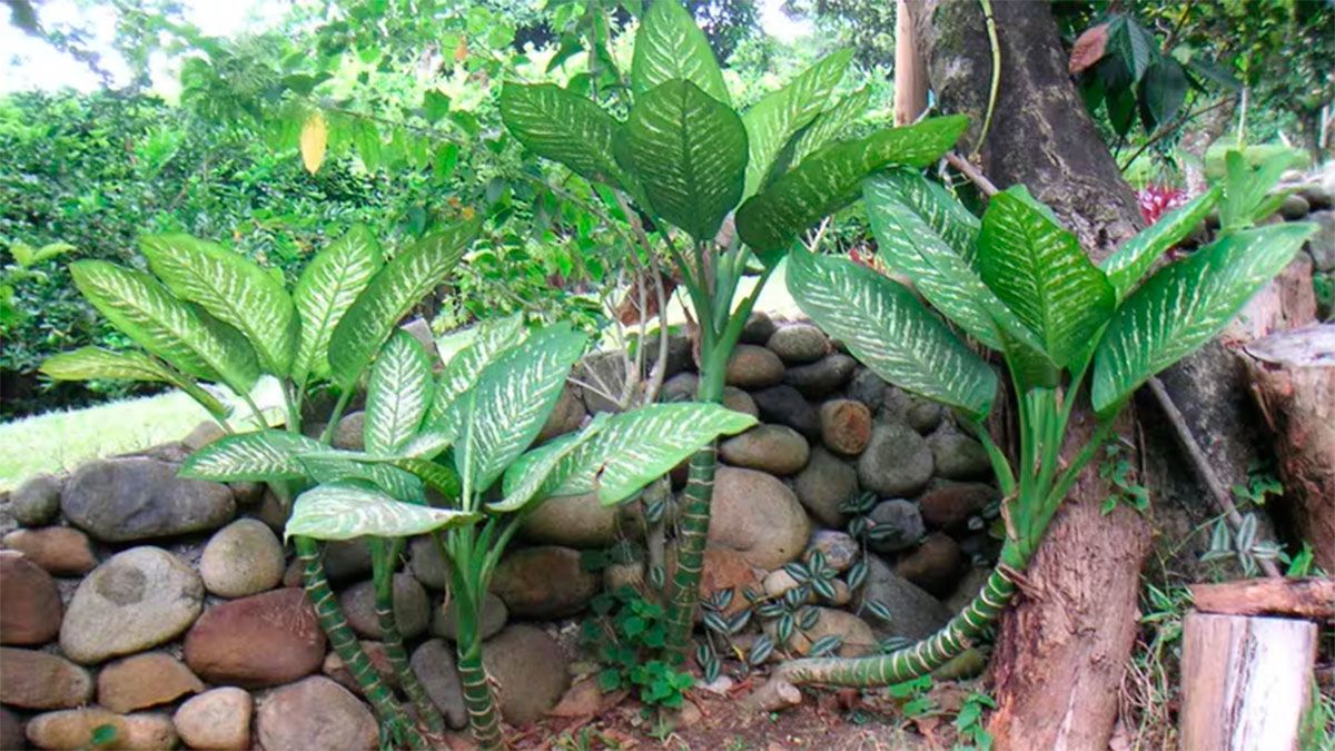 Y agrega: “Es característico que impida el habla (de ahí que a la Dieffenbachia se la conozca como caña muda). Existe la posibilidad de que el edema alcance la glotis, pero es raro y excepcional, en contra de lo que a menudo se ha afirmado sobre esta intoxicación”.