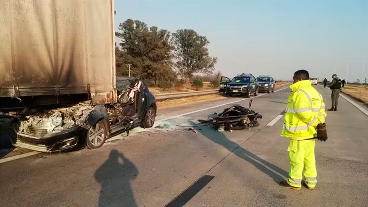 Los dos fallecidos viajaban en un Peugeot 308 con una persona más, que fue rescatada con vida. El vehículo se incrustó contra un camión, en el carril derecho de la traza, en la mano hacia Rosario, en el kilómetro 357. El tránsito está cortado, con desvíos hacia la ruta 9.