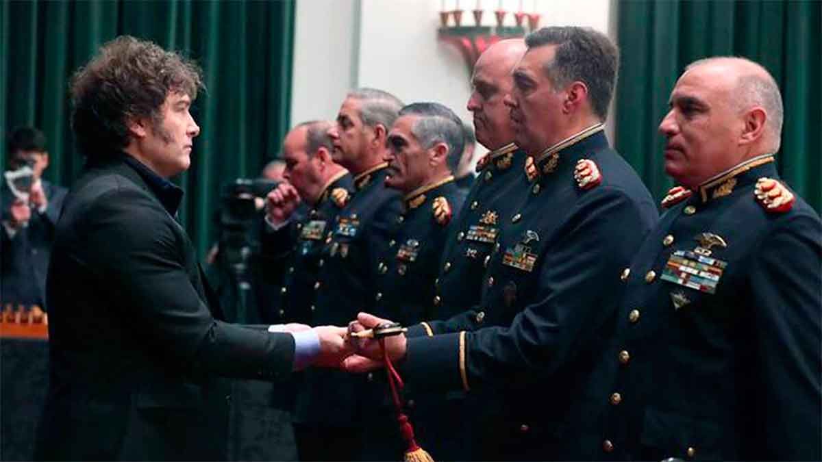 En su discurso, Milei también recordó el “esfuerzo que hemos hecho para que el Senado trate los ascenso para todos los rangos cajoneados hace más de dos años. Lo cual es curioso porque el mismo Gobierno que prometía los ascensos en campaña era el que tenía pisado los trámites. Pequeñas perlas de la hipocresía de la política argentina”.
