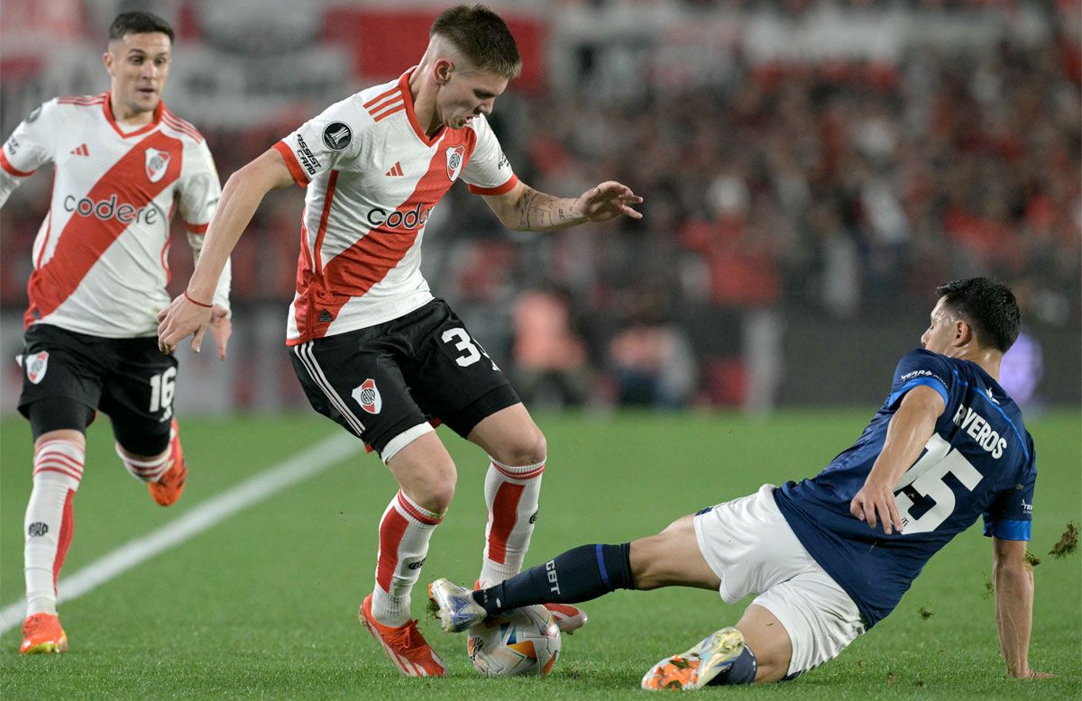 El gol desequilibró el trámite y le dio al conjunto de Walter Ribonetto, tarde, la fuerza para buscar el área local. Franco Armani tuvo enseguida trabajo ante Blas Riveros y Cristian Tarragona se lo perdió sin puntería. En el complemento, ya con Rodrigo Villagra en el medio en lugar de Aliendro, a los cuatro aumentó el anfitrión, cuando Maxi Meza salió airoso de la marca por izquierda y metió un bochón en el área que tocó Simón por arriba de Herrera.