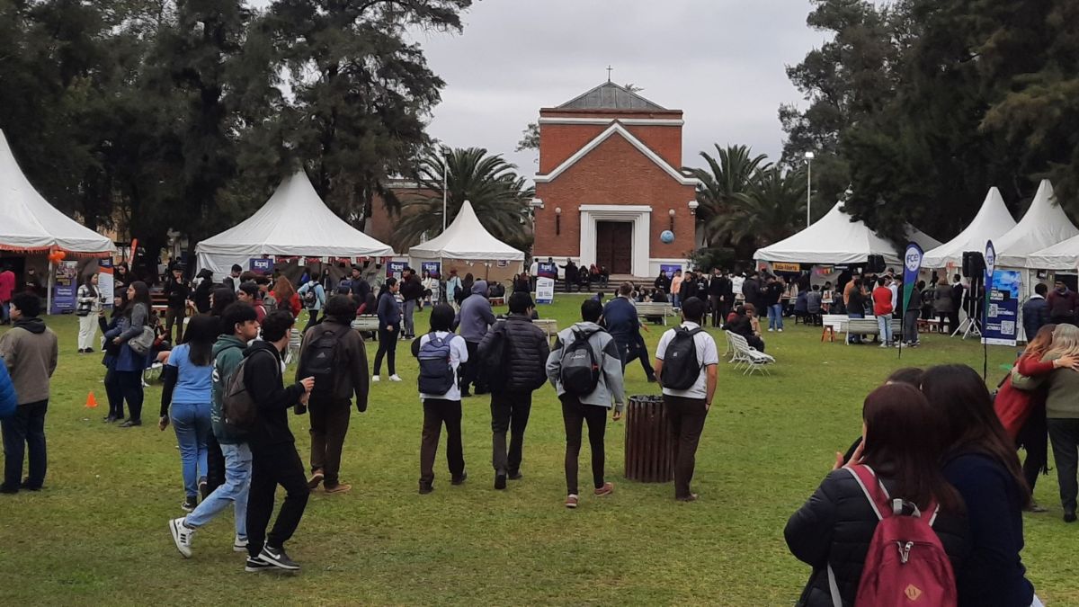 En el Campus Universitario se montarón carpas con stands de cada una de las facultades, en donde los asistentes a la EXPO UCSE buscan información de cada una de las carreras que pueden estudiar, sus planes de estudio y duración.